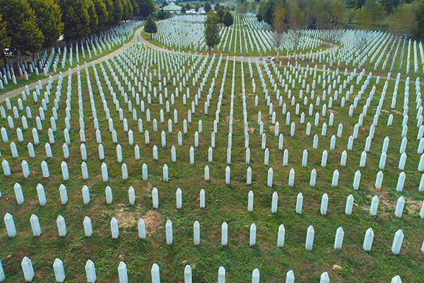Saraybosna içindeki parkların bir kısmı şehit mezarlığına dönüştürülmüş. Yan yana, omuz omuza dizilmiş yiğitler ebedi istirahatlerinde bile birbirlerini yalnız bırakmamışlar. Keza camilerin bahçeleri de öyle. Mezar taşlarına baktığınızda görüyorsunuz ki çoğu 1992-1996 arasında defnedilmiş.